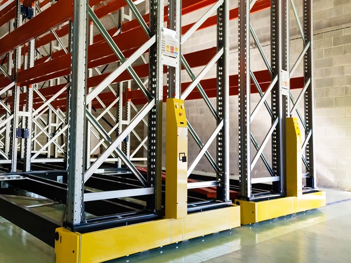 Das Mobile Palettenregal ist ein Lagersystem, das die notwendigen Gänge zum Zugriff auf jede Palette eliminiert, ohne dabei den schnellen Zugang zu den Paletten einzuschränken.