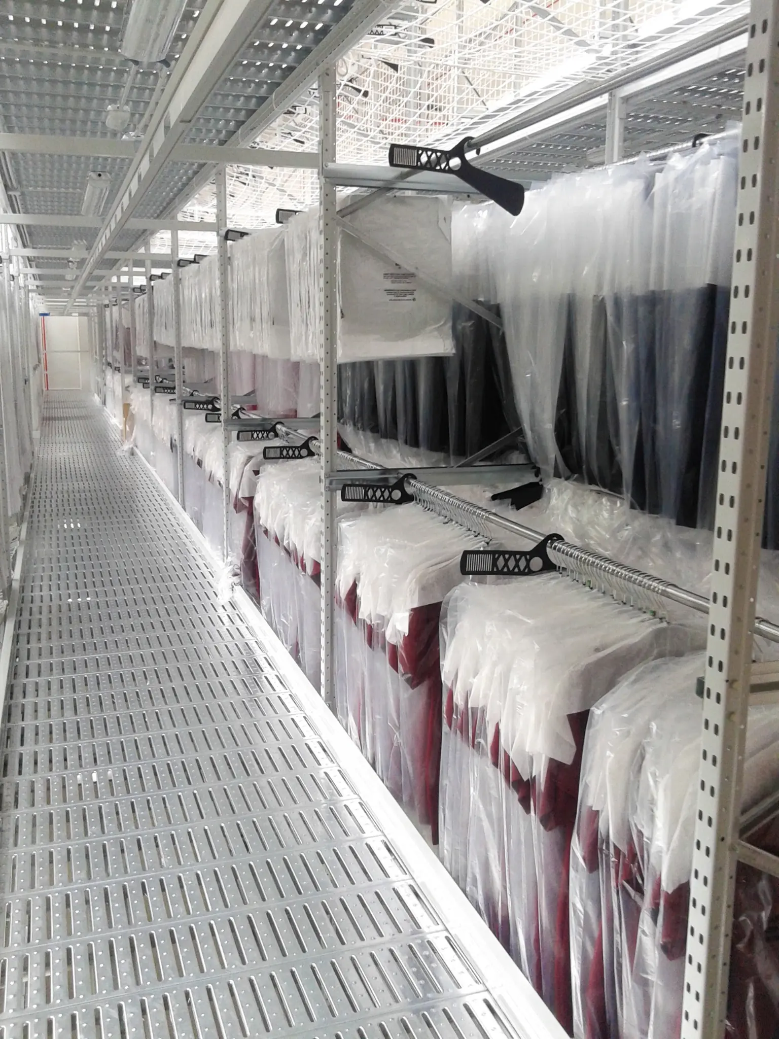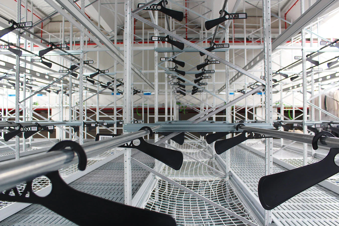 Das Regalsystem für Hängende Kleidung mit erhöhten Gängen von Kimer ist eine optimierte vertikale Lagerlösung, die entwickelt wurde, um die Lagerkapazität erheblich zu steigern.